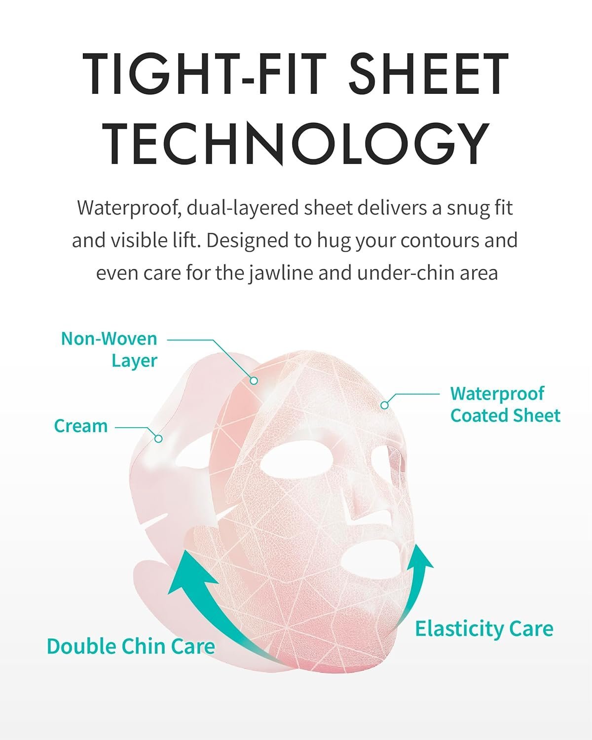Diseño V-Line Específico: Su material con recubrimiento impermeable asegura un ajuste firme y antideslizante que permite realizar otras actividades mientras actúa sobre la mandíbula y las mejillas.