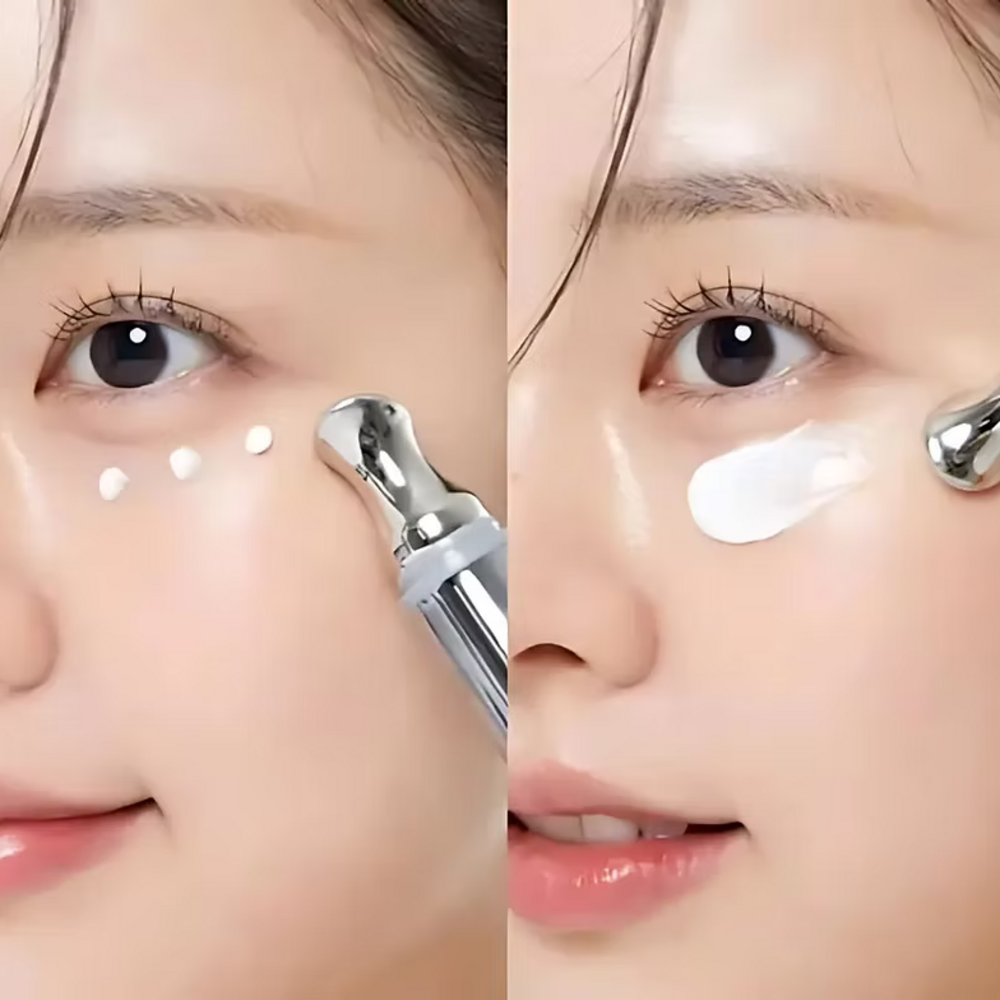 Продукт имеет вибрирующий металлический аппликатор, который усиливает впитывание и обеспечивает охлаждающий и успокаивающий массажный эффект.